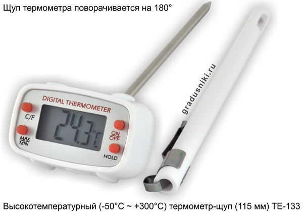 Термометры в Питере - Электронный термометр с поворотным щупом Санкт-Петербург - Термометр цифровой электронный ТЕ-133 высокотемпературный щуп. Электронный градусник для измерения низких и высоких температур от -50°C до +300°C: для воды, для мяса, для выпечки хлеба, для почвы, для лабораторий, для асфальта, для консервирования - купить в г. Санкт-Петербург - СПб