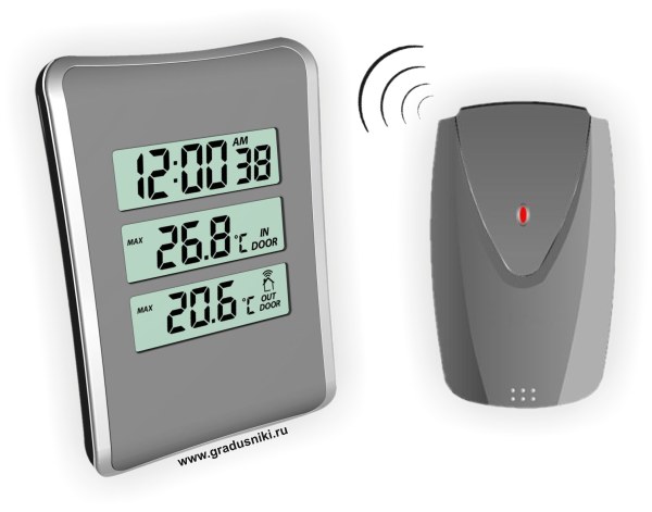 - отсутствие проводов между основным блоком и радиодатчиком даёт Вам полную свободу установки и позволяет использовать термометр на значительном удалении от окна
